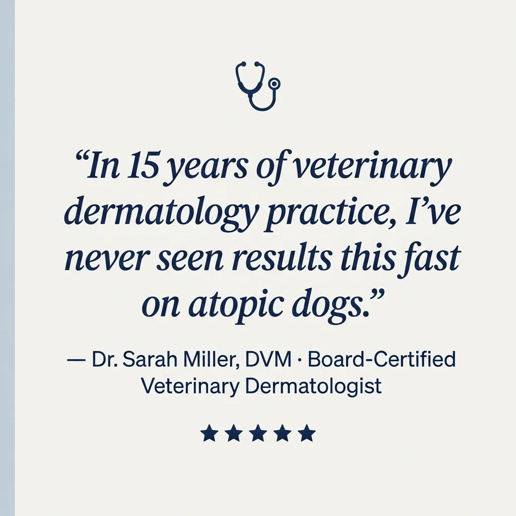 Why it works when Apoquel, medicated shampoos, and antihistamines don't: those treatments only block symptoms. Kindpaws repairs the underlying skin barrier so your dog actually heals — most owners see real change within 5-7 days.